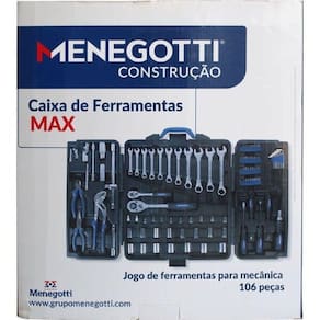 Suas principais características e especificações técnicas:Material de Fabricação: Aço Cromo-Vanádio (Cr-V). Garante alta resistência mecânica, tenacidade e durabilidade, sendo ideal para aplicações profissionais.Acabamento Superficial: Cromado Brilliant. Protege contra ferrugem e corrosão, facilitando a limpeza e mantendo a aparência de nova por mais tempo.Quantidade Total de Peças: 106 itens cuidadosamente selecionados para cobrir uma ampla gama de necessidades.Itens Inclusos no Conjunto:Chaves de Catraca (Rachetes): 1 unidade de 1/4 e 1 unidade de 3/8.Extensões: Diversas extensões de 1/4 e 3/8 em diferentes comprimentos.Soquetes: Jogo completo de soquetes sextavados nos padrões métricos e SAE (polegadas), para encaixes de 1/4 e 3/8.Bits de Aperto: Ampla variedade de bits Philips, Pozidriv, Plano (fenda), Torx e de segurança.Adaptadores: Permitem a conexão entre diferentes tamanhos de encaixe (ex.: 1/4 para 3/8).Chave de Biela (Barra Quebrada): Para fornecer torque extra e atuar como alavanca.Junta Universal: Permite trabalhar em ângulos difíceis e de difícil acesso.Alicates: Inclui alicate de corte e alicate bico-meia-boca multiuso.Chaves de Fenda: Diversas chaves de fenda com pontas variadas.Chave Allen (Hexagonal): Jogo de chaves Allen em medidas métricas.Maleta Organizadora: Fabricada em ABS de alta resistência, com alça para transporte, fechamento seguro e divisórias internas que mantêm cada peça no seu devido lugar.Marca: Menegotti. Uma das marcas mais confiáveis e tradicionais no mercado de ferramentas do Brasil.