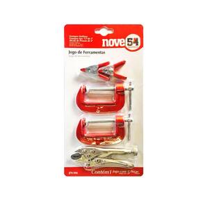 Jogo de ferramentas com 5 peças, jfn 046, nove54 1 jogo de ferramentas com 5 peças, sendo: 2 grampos tipo c de 2, 2 grampos multiuso e 1 alicate de 4.1/2 indicado para segurar, fixar, prender,travar e apertar diversos perfis de materiais proporciona versatilidade e praticidade de uso ao operador. Marca nove54 Modelo jnf 046 Qunatidade de itens 5 peças Medida do grampo c 2 Medida do alicate 4 Medida grampo multiuso legal de 90 dias Código de barras 7893946565084 Duvidas frequentes: Emitenf-e Sim, emitimos -e de todos os produtos comercializados O produto tem Sim, ferramenta manualcom de 3 meses Os produtos em são enviadosem no máximo 24hs após a confirmação do pagamento exceto feriados e finais de semana Direito de arrependimento da compra Art. 49. O consumidor pode desistir do contrato, no prazo de 7 dias a contardo ato de recebimento do produto Obs: o produto não deve apresentar sinais de uso Sobre a Oferecemos de 3 meses a partir da data de emissão da contra defeitos de funcionamento. Não se aplica a : Perda de algum componente; qualquer quebra causada por queda, manuseio inadequado; danos causados por produtos de limpeza abrasivos; conserto efetuado por terceiros. Marca: Não Informado