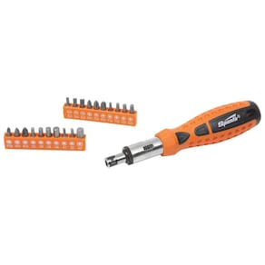 1 jogo com 20 bits: hexagonal 3,4,5,6 mm / quadrado s1,s2 / adaptador/torx T10,T15,T20,T25 / pozidrive 0-1-2 / philips 1-2-3 / fenda 3-4-5