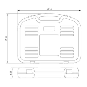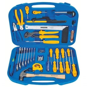 - martelo:Cabeça forjada e temperada em aço carbono especial. Acabamento com pintura eletrostática Na Cor PRETA. Cabo em madeira envernizada fixada com epóxi.- chaves de fenda: Haste em aço carbono temperado. Acabamento niquelado. Cabo injetado.* Ponta Chata: referente às de Compr. Total: 115,0 mm (AZUL) - 155,0 mm (AMARELO) - 170,0 mm (AMARELO) -215 mm (AMARELO) - 200 mm (AMARELO) - 255,0 mm (AMARELO) - 230 mm (AMARELO) com isolação elétrica de - 20,5 mm (PRETO) -* Ponta Cruzada: referente às Compr. Total: 105,0 mm (AZUL) - 165,0 (AMARELO) - 205,0 mm (AMARELO) -- Chave de teste: Haste em aço carbono temperado. Acabamento niquelado. Cabo injetado. Circuito Elétrico ativado através de Botão Na extremidade do cabo. Lâmpada de neon. ponta Chata.- Chave fixa: Corpo forjado em aço carbono e temperado. Acabamento cromado. abertura das bocas calibradas.* Referente à Compr. Total de todas as Chaves Fixas acima.- Nível de Plástico: Ampola de 360 que permite leitura acurada. Corpo injetado em ABS. Bolha removível: 3 posições: (0, 45 e 90).- Esquadro: Corpo em aço carbono temperado. Cabo injetado. Graduação em milímetros e polegadas.- Miniarco de Serra: Lâmina de 10. Cabo ergonômico injetado.- formão: Lâmina em aço cromo Vanádio temperado e lixado. Lâmina chanfrada e polida.- Acompanha a maleta e 6 buchas e 6 parafusos.- Orientações Gerais: Sempre ultilizar óculos de para proteger os olhos. Sempre ultilizar chaves de fenda isoladas, identificadas pela marcacção , quando é necessário trabalhar em um onde tenha corrente elétrica. Ultilizar chaves com pontas adequadas para cada tipo de fenda, para realizar a tarefa de forma mais rápida e segura. Respeitar o torque estabelecida por norma para cada bitola. Não ultilizar as chaves de fenda como formão ou alavanca. Não alterar dimensões da ponta para obter outro perfil. Ultilizar luvas para proteger as mãos. Manter ferramentas de corte longe do alcance de crianças. Manter as feramentas sempre limpas para melhor agarre, pois usa-las sujas de óleo ou graxa podem causar acidentes.- Foto meramente ilustrativa. Ean: 7891114014594