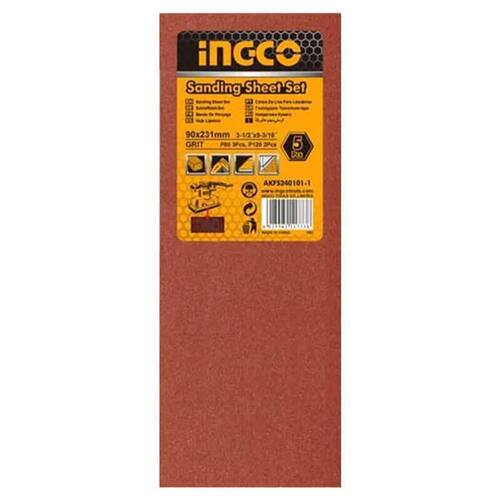 - itens inclusos: 01 jogo de folhas de lixa ingco 145x114mm p80 e p120 com 5 pecas