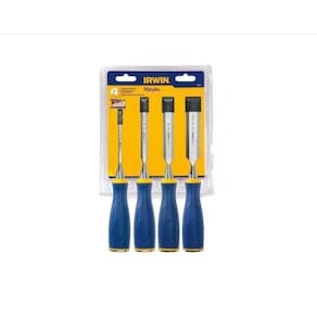 Jogo De Formões Para Madeira 4 Peças 1/4 1/2 3/4 1 IrwinCaracterísticas:- Larga capa de metal resistente a golpes de martelo.- Desenho de cabo ergonômico com agarre ProTouch tm , extremo conforto para o usuário.- Lâmina de aço cromo vanádio de alta qualidade para um desempenho superior.- Laterais chanfradas para melhor finalização dos cantos.- Excelente durabilidade, para suportar o abuso do canteiro de obras.- Resistentes e duráveisEspecificações:- Marca: Irwin- Jogo com 4 formões nas medidas: 1/4 6mm , 1/2 13mm , 3/4 19mm , 1 25mm .- Peso bruto: 835g- Garantia: 90 dias