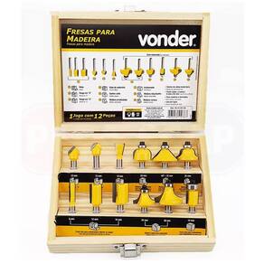 Jogo de Fresas para Madeira com 12 Peças Metal 6mm Vonder com Maleta.