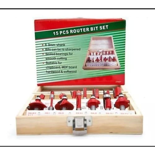 Jogo De Fresas Tupia 15 Peças 8mm Com Maleta Jogo de Fresas em metal duro / vídea para Madeira com haste 8mm e 15 Peças. Fresas reta, com rolamento, para rasgo em V e U, moldura, chanfro, etc.- Marca: SIGA TOOLS- Referência: 9ZP- Diâmetro das hastes: 8mm- Comprimento das hastes: 30mmFresas com dentes de metal duro/vídea, conferindo maior durabilidade- 1 Fresa para Rasgo um U 12,7mm raio 6.35 - 1 Fresa para moldura arredondada com rolamento 22m raio 6.35 - 2 Fresa rabo de andorinha 12.7mm ângulo 14 - 1 Fresa chanfro 45º 32mm- 1 Fresa para acabamento com rolamento 12,7mm- 1 Fresa reta 16mm- 1 Fresa quebra canto com rolamento 22mm raio 6.35 - 1 Fresa reta 12mm- 1 Fresa reta 6mm- 2 Fresa quebra canto com rolamento 28.6mm raio 9.5 - 1 Fresa rasgo em V 12.7mm Ângulo 90 - 1 Fresa moldura romana com rolamento 25.4mm raio 4 - 1 Chave allen- 1 Estojo em madeira- Peso bruto: 500 gramas.