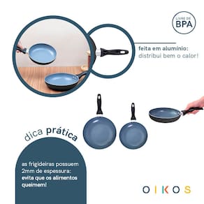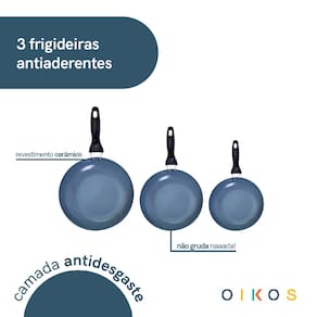 "conheça o jogo de frigideiras 3 pçs antiaderentes de cerâmica da coleção base da oikos!