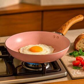 Os cabos em baquelite siliconado com efeito amadeirado trazem charme e conforto térmico ao manusear. Já o tom rosa externo confere um ar moderno e sofisticado à sua cozinha.