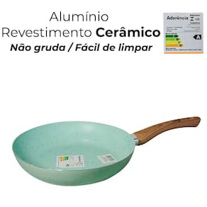 Características: Marca: Casambiente Material: Alumínio com revestimento cerâmico, cabos em baquelite Referência: AL234 AL235 AL236 AL242 Espessura: 2,0mm de espessura na borda e 2mm em seu corpo Cor: Verde Claro Quantidade: 4 peças Modelo: Sahara Chama Verde