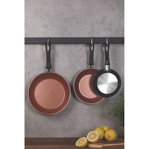 Jogo de Frigideiras Tramontina Caribe com Revestimento Interno em Antiaderente Starflon Max e Externo de Poliéster Preto 03 Peças O jogo de frigideiras Tramontina Caribe com revestimento interno em antiaderente Starflon Max e externo de poliéster preto 03 peças vai proporcionar maior praticidade e versatilidade para sua cozinha. Desenvolvidas em alumínio com revestimento interno em antiaderente Starflon Max, as peças cozinham os alimentos de maneira rápida e uniforme, evitam que os alimentos grudem na superfície e são superfáceis de limpar. Os cabos são de baquelite, material antitérmico que oferece maior segurança durante o manuseio. Seu revestimento externo é revestido em poliéster e oferece ainda mais beleza durante os preparos! Corpo de alumínio com espessura que proporciona cozimento rápido e uniforme. Revestimento interno de antiaderente Starflon Max que não gruda, é fácil de limpar, mais durável e não é prejudicial à saúde, pois é livre de PFOA. Revestimento externo de poliéster.Cabos de baquelite antitérmico que oferecem segurança durante o manuseio. Cuidados com o produto A capacidade volumétrica máxima para cozimento é de 3/4 da capacidade total da peça.Posicione os cabos dos utensílios voltados ao centro do fogão.Em fogões com grade, centralize as peças sobre a chama ou fonte de calor e alinhe os cabos com a grade. Utensílios quentes devem estar fora do alcance das crianças. Antes do primeiro uso, lave com esponja macia, sabão neutro ou detergente líquido. Depois de secar, unte a área interna com óleo ou gordura e leve ao fogo por um ou dois minutos. Deixe esfriar e lave novamente. Seus utensílios Starflon estão prontos para uso com ou sem gordura, sempre em fogo baixo ou médio (nunca superior a 220 °C).Ao manusear seus utensílios aquecidos, cuide para não arranhar/riscar o revestimento externo. Evite manchas não deixando escorrer gordura e alimentos na área externa das peças. Caso esta situação ocorra, é recomendado realizar a limpeza imediata do local com um pano umedecido em água. Para mexer os alimentos use somente utensílios de silicone, nylon ou madeira.Estes produtos não necessitam de manutenção, apenas limpeza. Limpeza: Evite a imersão dos utensílios quentes em água fria. Nunca utilize produtos abrasivos na lavagem. Se deixar queimar alimentos, umedeça a área e reserve até que possa remover os resíduos grudados com esponja e sabão. Para descarte dos produtos e embalagem siga as orientações de reciclagem vigentes. Garantia 90 dias para vícios ou defeitos de fabricação.
