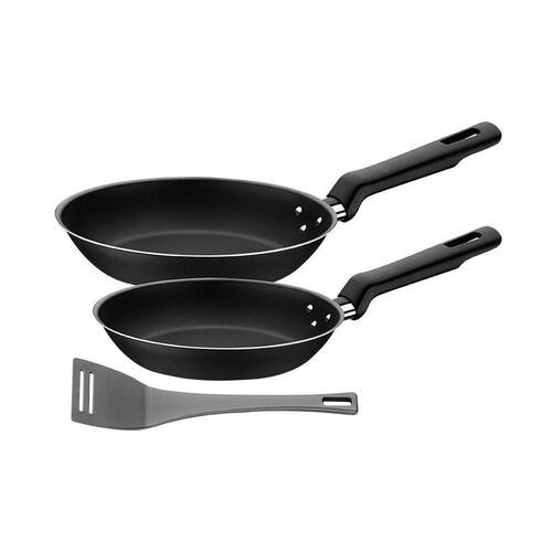 O que vem na caixa: 1 Frigideira 18cm 1 Frigideira 22cm 1 Espátula