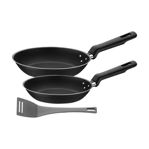 O Jogo de Frigideiras Tramontina Loreto em Alumínio com Revestimento Interno e Externo Antiaderente Starflon T1 com Cabos Baquelite Grafite 3 Peças é a escolha certa para sua cozinha! As duas frigideiras são produzidas em alumínio, que proporciona um cozimento rápido e uniforme dos alimentos, devido sua espessura. Seu revestimento interno e externo antiaderente Starflon T1 possui alto poder de antiaderência e ainda garante maior resistência à abrasão, prolongando sua vida útil em 5.000 ciclos. Para dar mais segurança no manuseio, os cabos são produzidos em baquelite antitérmico, que não esquenta e evita queimaduras. Além disso, acompanha uma espátula para lhe auxiliar nas mais diversas receitas. É um jogo essencial em sua cozinha, pois é resistente, durável e prático, podendo ir à máquina de lavar louças todos os dias. Garanta já o seu e tenha momentos inesquecíveis na cozinha!