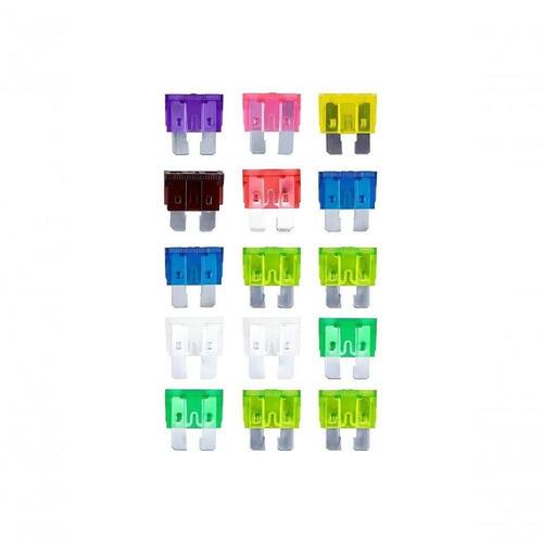 - Quando necessário, substitua o fusível queimado por outro novo de mesma amperagem, seguindo as instruções contidas no manual do proprietário. - Atenção:- Não tente usar fusíveis de maior amperagem para não perder a principal característica do produto que é a proteção do circuito.- Utilizar um fusível com amperagem menor que o indicado pelo fabricante do automóvel, poderá queimar o fusível mais facilmente. - Observação:- O ampére vem marcado na base do fusível. - Cuidados:- Armazene em local seco e fresco, longe de umidade.- Guarde em local seguro.- Guarde estas instruções para futuras consultas.- Mantenha fora do alcance das crianças.- Trabalhe Seguro.- Use óculos de proteção. *Imagens meramente ilustrativas. - Dimensões da Peça: 2 x 1,8 x 0,5cm- Dimensões da Embalagem: 12 x 1 x 18,5cm - Quantidade Inner: 60 Peças- Dimensões Inner: 33 x 20 x 13cm - Quantidade Master: 240 Peças- Dimensões Master: 42 x 35,5 x 29cm - Material: Zinco e Plástico (ABS) - Cor: Violeta, Rosa, Laranja, Marrom, Vermelho, Azul, Amarelo, Transparente, Verde e Verde claro - Tipo de Embalagem: Blister - Marca: Western - Contém 15 fusíveis:- 01 Violeta (3A)- 01 Rosa (4A)- 01 Laranja (5A)- 01 Marrom (7,5A)- 01 Vermelho (10A)- 02 Azul (15A)- 02 Amarelo (20A)- 02 Cristal (25A)- 02 Verde claro (35A)- 02 Verde (30A)