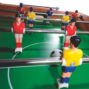 Jogo De Futebol De Mesa Pebolim Totó Extra GrandeA diversão da garotada esta garantida O Mini Jogo de Pebolim, é ótimo para jogar entre família e amigos, tirando qualquer um do tédio. Este Jogo de Totó possui um ótimo acabamento, é prático e compacto que permite seu transporte para qualquer lugar. Recomendado para crianças com mais de 15 anos por conter peças pequenas que podem ser engolidas. Características: Marca: Brilho de Diamante 18 jogadores Plástico Injetado Marcação individual de pontos Placar Material: Madeira Industrializada MDF; Material dos Bonecos: Polipropileno 18 bonecos 5x5 ; Tamanho aproximado do tabuleiro: 70 x 37cm. Modelo: Jogo Futebol Mesa Gg 70X37X60 Com os Pés Referência: ZJFQ-2770 Código Barras: 5702051027702 Dimensões aproximadas: Largura: 70cm Profundidade: 37cm Altura: 60cm Peso: 5,350 Kg Inclui: 1 Tabuleiro 4 Pés para montagem 02 Bolas Plásticas 6 Eixos com 18 jogadores 2 Marcadores de Pontos; Ferramentas para montagem