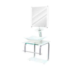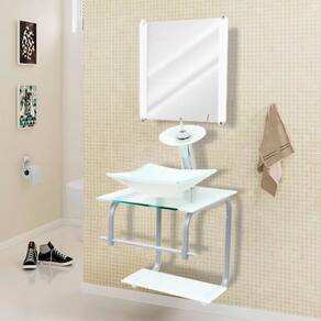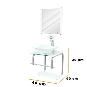 - Gabinete De Vidro 40 Cm Para Banheiro Composto De Bancada De Vidro - Cuba De Vidro Quadrada - Prateleira Da Bancada - Espelheira - Válvula Cromada - Suporte E Porta Toalha De Metalon - Kit Parafusos Completo Para Instalação