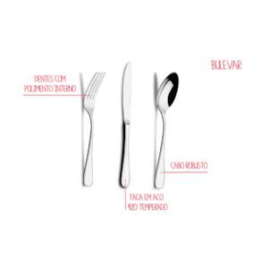 Para uma mesa elegante e clássica, a linha Bulevar possui um design tradicional e cabo em formato de gota com recortes. O garfo de mesa é perfeito para usar no almoço ou jantar. A estrutura e o cabo em aço inox polido tornam a peça altamente durável e resistente, não correndo risco de oxidar e podendo inclusive ir á máquina de lavar louça.