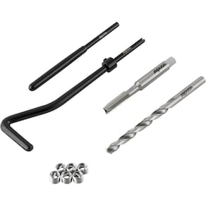 1 Jogo composto por: 1 macho para inserto M8, 1 broca 8,3 mm, 1 ferramenta para instalar inserto roscado, 1 punção e 6 insertos M8 x 8 mm