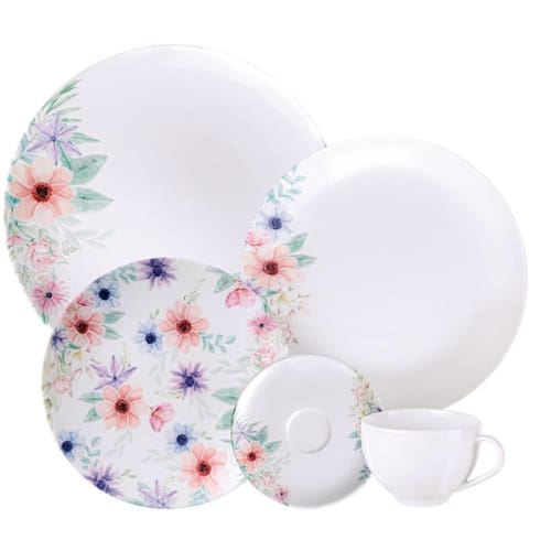 Jogo de Jantar 30 Peças Tramontina Floratta Porcelana Mesa Posta Aparelho 6 Pessoas.