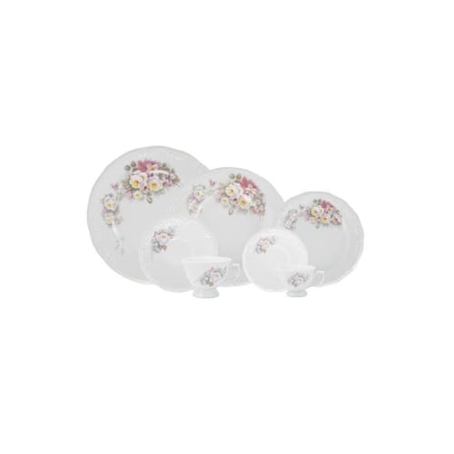 A delicadeza das rosas e a sutileza dos tons pásteis é o que define uma das decorações mais tradicionais da marca. O serviço de jantar 42 pçs é composto por 6 pratos de sobremesa com 19 cm, 6 pratos fundos com 23 cm, 6 pratos rasos com 26 cm, 6 pires para xícara de chá, 6 xícaras de chá de 200 ml, 6 pires para xícara de café e 6 xícaras de café 80 ml