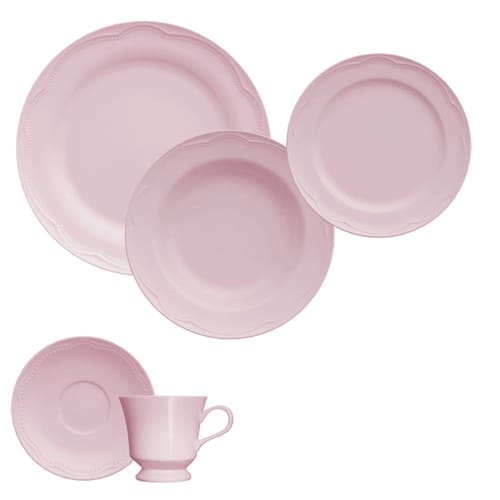 Jogo de Jantar e Chá Porcelana 30 Peças com Pratos Rasos e Fundos rosa Cottage Germer