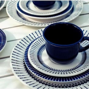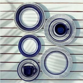 Renda-se ;também aos encantos dos padrões geométricos! A coleção Donna Colb aposta na sobriedade das linhas retas e na elegância da cor azul cobalto para criar uma louça atual e diferenciada.