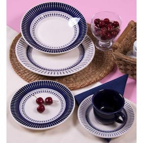 - 4 Pratos Rasos4 Pratos Fundos4 Pratos para Sobremesa4 Xícaras para Chá4 Pires