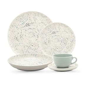 • Dimensões: Prato Raso Ø 26,5x2,5cm | Prato Fundo Ø 21x4cm | Prato Sobremesa Ø 20,5x2cm | Xícara Ø 9,5x5,5cm | Pires Ø 15x2cm