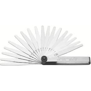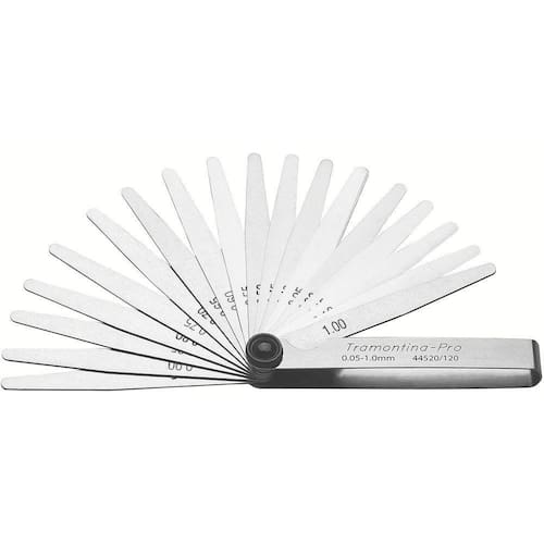 Além dos trabalhos de calibração, as lâminas são muito usadas no controle de folga de equipamentos automotivos, de aviação, a diesel e agrícola. específico em ajustes de tuchos, velas, pontos do distribuidor, verificação de folgas em rolamentos e engrenagens, ajuste de pistões, anéis e pinos, calibração de canais estreitos, etc. Possui sistema de trava que permite segurar firmemente uma ou mais lâminas em posição. Quem é PRO usa! - Corpo em aço inoxidável; - Lâminas em aço alto carbono temperadas; - Comprimento das lâminas de 100mm; - Acabamento cromado; - Jogo com 20 lâminas de espessura de: 0,05; 0,10; 0,15; 0,20; 0,25; 0,30; 0,35; 0,40; 0,45; 0,50; 0,55; 0,60; 0,65; 0,70; 0,75; 0,80; 0,85; 0,90; 0,95 e 1,00 mm; - Lâminas aferidas individualmente; - Possui sistema de trava que permite segurar firmemente uma ou mais lâminas em posição; - As lâminas podem ser facilmente removidas ou substituídas; - no controle de folga de equipamentos automotivos, de aviação, a diesel e agrícola, trabalho de calibração e experimental; - específico em ajustes de tuchos, velas, pontos do distribuidor, verificação de folgas em rolamentos e engrenagens, ajuste de pistões, anéis e pinos, calibração de canais estreitos, etc.; - Ferramentas produzidas e testadas conforme normas especificas. Orientações Gerais: - Use óculos, luvas e outros equipamentos de proteção individual (EPIs) de acordo com a tarefa a ser executada; - Armazene em local limpo e seco. - Dimensão Extra A: 13,0 mm - Dimensão Extra B: 13,0 mm - Dimensão Extra C: 108,0 mm Cor: InoxPeso do Produto: 0,11g Dimensões do Produto (CxLxA): 108x 13x 13mm Fabricante: Tramontina