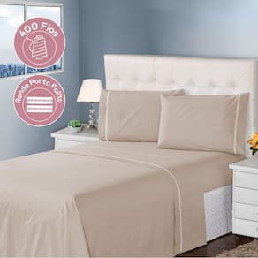 Motivos para Comprar- Jogo de Lençol Parcial ou Completo para sua Cama; - Deixa seu quarto completo; - Perfeito para presentear, pois se trata de um jogo de cama completo; - O material se mantém bonito por muito tempo, não amassa, seca mais rápido; - A qualidade e sofisticação que seu quarto merece; - Possui toque macio, tornando-o mais confortável. CaracterísticasItens Inclusos: 01 Sobre Lençol, 01 Lençol Ajustável 02 FronhasLargura e comprimento: 01 Sobre Lençol 2,60m x 2,40m01 Lençol Ajustável 1,98m x 1,58m x 40cm (Com Elástico)02 Fronhas 70cm x 50cmMarca: Casa Dona Modelo: Ponto PalitoTecido: Percal de Poliéster Quant. Fios: 400 FIOS Composição: 100% PoliésterCuidados na Lavagem- Não utilizar alvejante; - Ao lavar na máquina, usar programa ?delicado?; - Secar à sombra; - Passar com ferro a baixa temperatura; - Não lavar a seco.