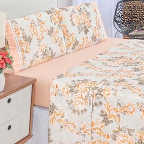 Jogo De Lençol Afrodite King 4 Peças Algodão 180 Fios Estampa Floral - Salmão - Única