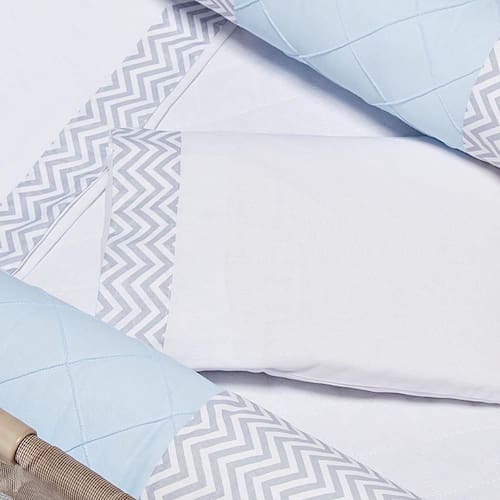 Conheça agora nosso Jogo de Lençol para Berço Desmontável Camping ou Chiqueirinho com 3 Peças, possuindo um barrado estampado para que dê um charme elegante