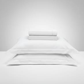 01 Sobre lençol Buettner c/ vira 2,40m x 2,60m 01 Lençol com elástico 1,58m x 1,98m x 35cm 02 Fronhas c/ aba e royal 50cm x 70cm