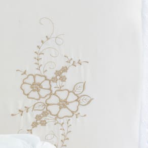 Design delicado e romântico: A estampa floral bordada em tons suaves, combinada com a renda delicada, confere um toque de romantismo e elegância ao seu quarto.