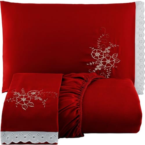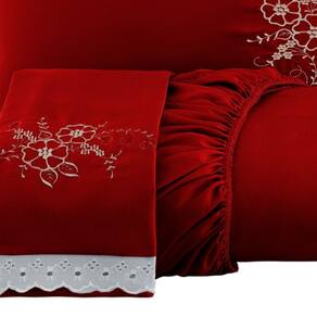 Jogo de Lençol Casal 3 Peças com Elástico Bordado - Vermelho