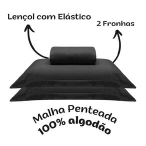 Jogo de Lençol Casal Algodão 3 peças Rolinho Malha Image Liso Buettner - Preto