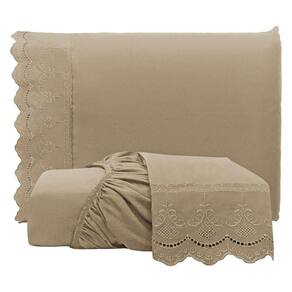 Jogo De Lençol Casal Padrão Bordado Ingles Micropercal 300 Fios Toque De Algodão 3 Peças - Chocolate - Marrom