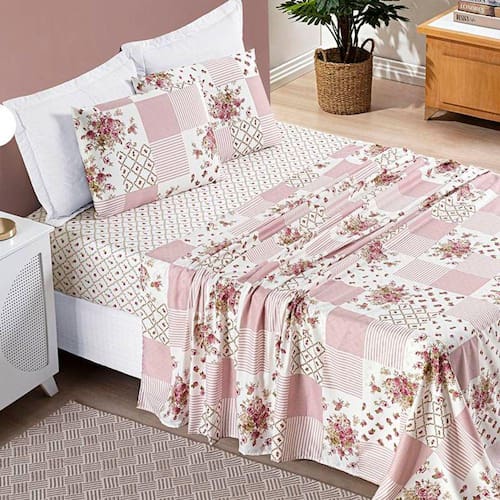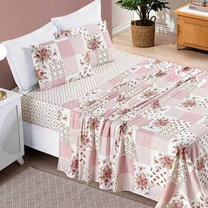 Jogo de Lençol Casal Padrão Bouti Estampado 4 Peças - Rosa Matura - Única