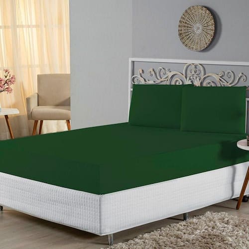 Jogo De Lençol Casal Padrão Malha 100% Algodão 3 Peças Cor Verde Bandeira