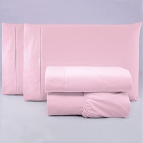 Jogo de Lençol Casal Padrão Percal 200 Fios 100% Algodão 4 Peças - Rosa