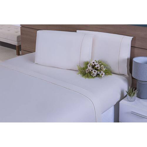 O Jogo de Lençol Casal Queen Size conta com 04 peças e é ideal para colchão com até 35cm de altura. O Kit 100% algodão 200 fios com ponto palito colabora com o seu bem-estar em noites de sono muito mais confortáveis, garantindo muita maciez e alta durabilidade.
