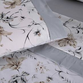 Jogo de Lençol Completo Encantare Roupa de Cama Casal Padrão Percal 180 Fios Estampado Ponto Palito Algodão 4 Peças - Cinza Claro