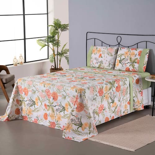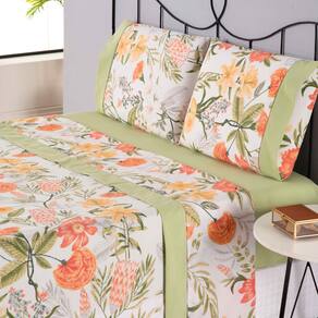 JOGO DE LENÇOL ENCANTARE PONTO PALITO ESTAMPADO COMPLETO 4 PEÇAS CASAL PADRÃO.