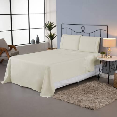 INFORMAÇÕES ESPECÍFICAS: - Detalhe ponto palito nas fronhas e ótimo tamanho de transpasse, evitando que fique saindo do travesseiro; - Jogo de lençol completo, acompanha lençol de cima (virol), podendo usar para se cobrir; - Disponível em 6 opções de cores; - Elástico em volta de todo o lençol de baixo; - Ideal para compor a decoração do quarto, podendo facilmente combinar.