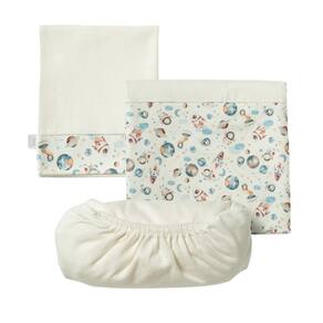 Suedine 100% algodão. Cor: Off White / Estampado Azul Itens Inclusos: 1 Lençol com elástico 1 Fronha 1 Sobre lençol