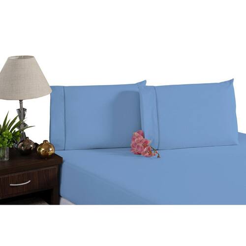 Jogo De Lençol Elástico E Fronhas Percal Algodão Azul Extrema maciez, vai deixar sua noite de sono mais confortável por ser produzido em um tecido percal 180 fios e 80% algodão, com ótimo acabamento, dará um ar mais elegante para o seu quarto. Contém: 01 lençol com elástico para colchão de: 1,98m x 1,58m x 0,30cm de altura. 02 fronhas 70cm x 50cm. Composição: tecido 80% algodão percal 180 fios após a compra