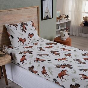 Com uma estampa delicada e cheia de charme, esse jogo de lençol é perfeito para quem ama o universo dos cavalos, trazendo um toque de magia e aconchego ao quarto infantil.