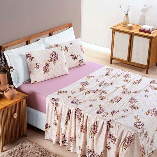 Com uma estampa encantadora, este jogo de lençol adiciona um toque de elegância e personalidade ao seu quarto. A estampa é delicada e versátil, adequando-se a uma variedade de estilos de decoração. Ela é perfeita para criar um ambiente acolhedor e convidativo.