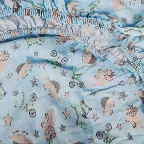 Jogo de Lençol KazzaVip Baby Malha 100% Algodão Berço Americano Estampado Baby Dino Bike Com Elástico 2 Peças Azul