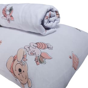 Conteúdo e Medidas: Jogo de Lençol Malha Berço Americano - Ursinho Pooh - 02 Peças 01 - Lençol Malha Baby Estampado c/ Elástico (70cm x 130cm x 12cm) 01 - Fronha Malha Estampada (30cm x 40cm)
