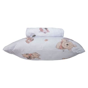 Jogo de Lençol KazzaVip Baby Malha 100% Algodão Berço Americano Estampado Ursinho Pooh Com Elástico 2 Peças Branco