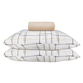 Jogo de Lençol KazzaVip Casal Malha 100% Algodão Lençol com Elástico Bruxelas 3 Peças Bege Caqui