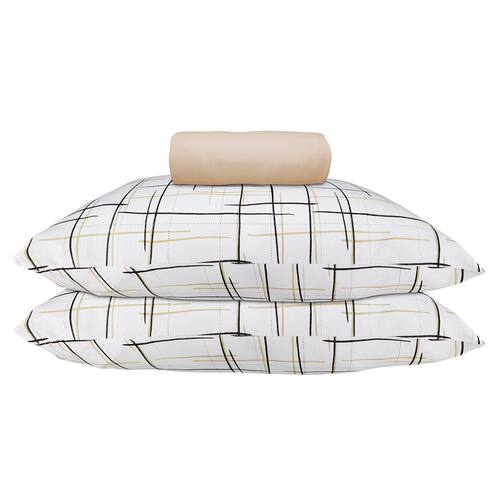 Jogo de Lençol KazzaVip Queen Malha 100% Algodão Lençol com Elástico Bruxelas 3 Peças Bege